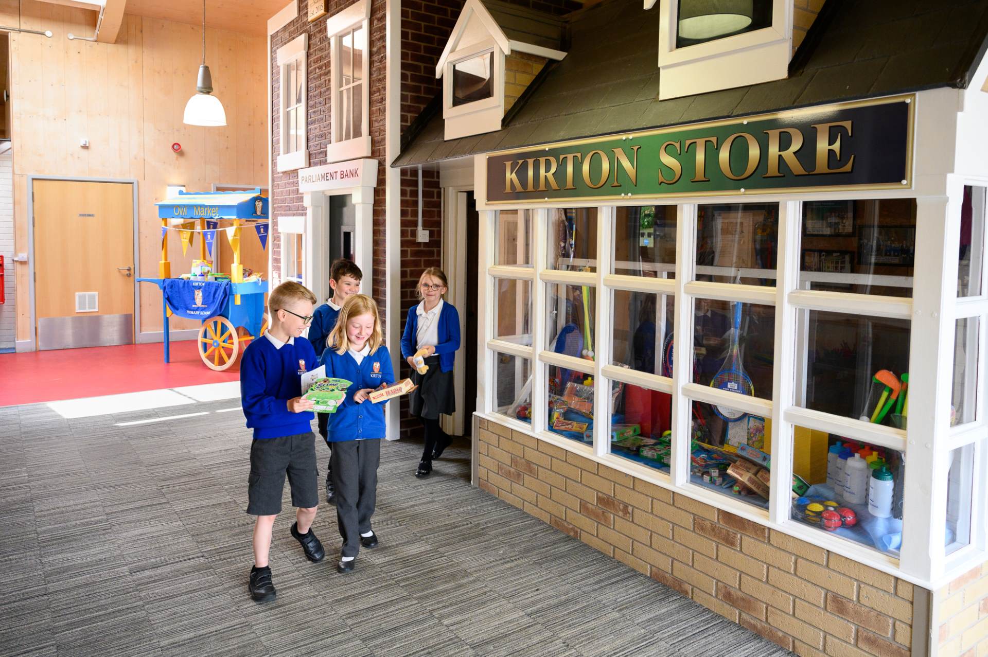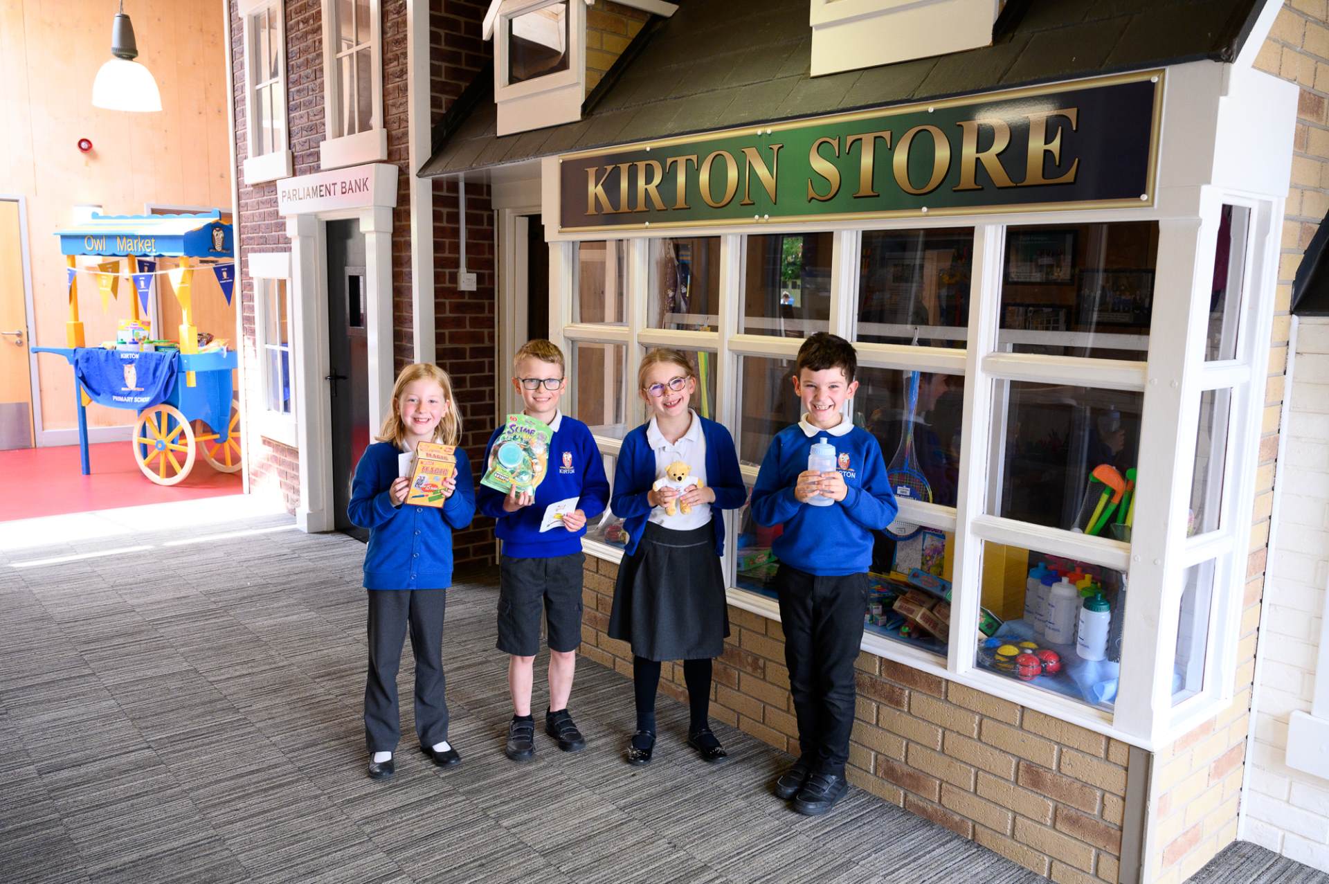 Our second aim is to teach our children the concept of and the relationship between work, money, saving and spending. Children from Y1 to Y6 are encouraged to bank their earnings by opening an account at the ‘Parliament Bank’. They have the opportunity to browse in ‘Kirton Stores’ to identify items for which they might like to save. Merchandise ranges in price from 3k to 100K. Throughout their time at school, the children will learn how to manage their finances by appreciating the connection between work and reward, the value of money, and the potential reward of saving versus the impulse to spend.